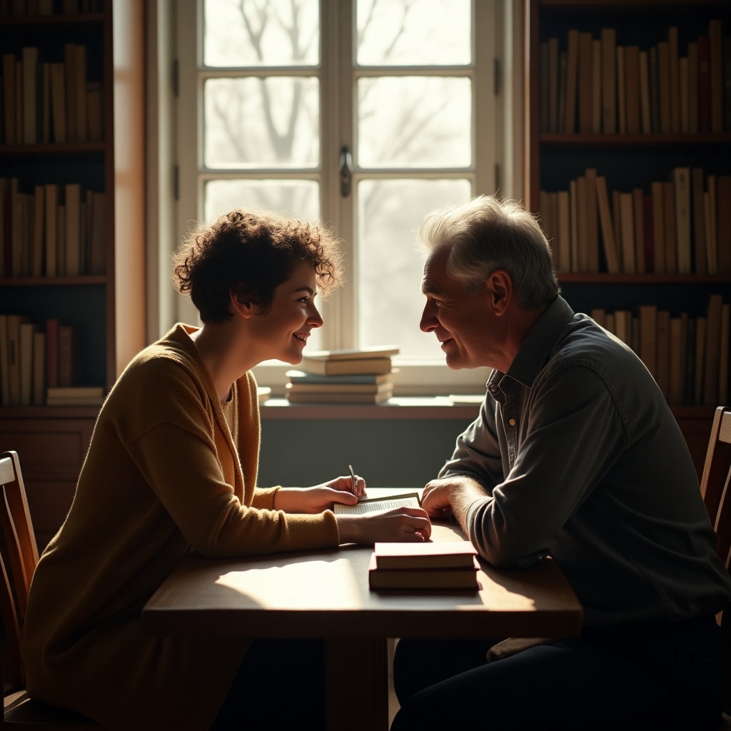 Their conversation started awkwardly, constrained by years of unspoken words and invisible boundaries. They spoke of trivial matters first, as people often do when confronted with the weight of their own history. How the town had changed, how the library was one of the few constants, and how time had etched its storylines across their faces.
