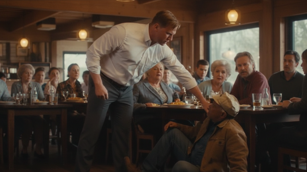 Thomas Reeves pushed open the heavy oak door of The Heritage Grill, his worn work boots scuffing against the polished floor. The lunch rush was in full swing—every table packed, waiters weaving between chairs with trays held high.