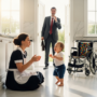 The first few days passed without incident. Sofía colored quietly, hummed to her doll, stayed exactly where she was told. But children are curiosity without a cage. And one afternoon, while Lucía worked upstairs, Sofía noticed a door left slightly ajar — one that led deeper into the house, into hallways that felt like a different country. Tall paintings. A chandelier that caught the afternoon light. Cold marble under her small sneakers.