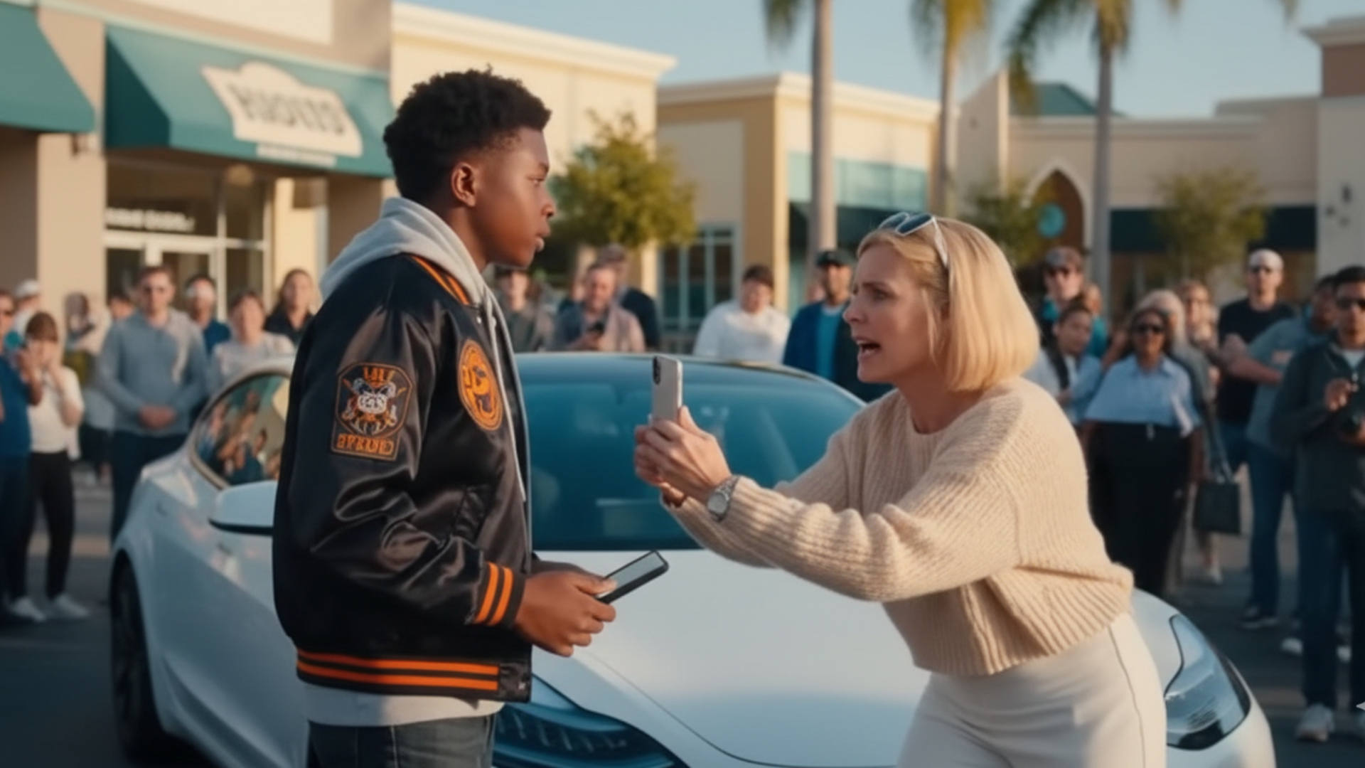 He turned. A white woman in yoga pants was speed-walking toward him, phone already raised. Her face was red, her voice shrill enough to turn heads across the parking lot.