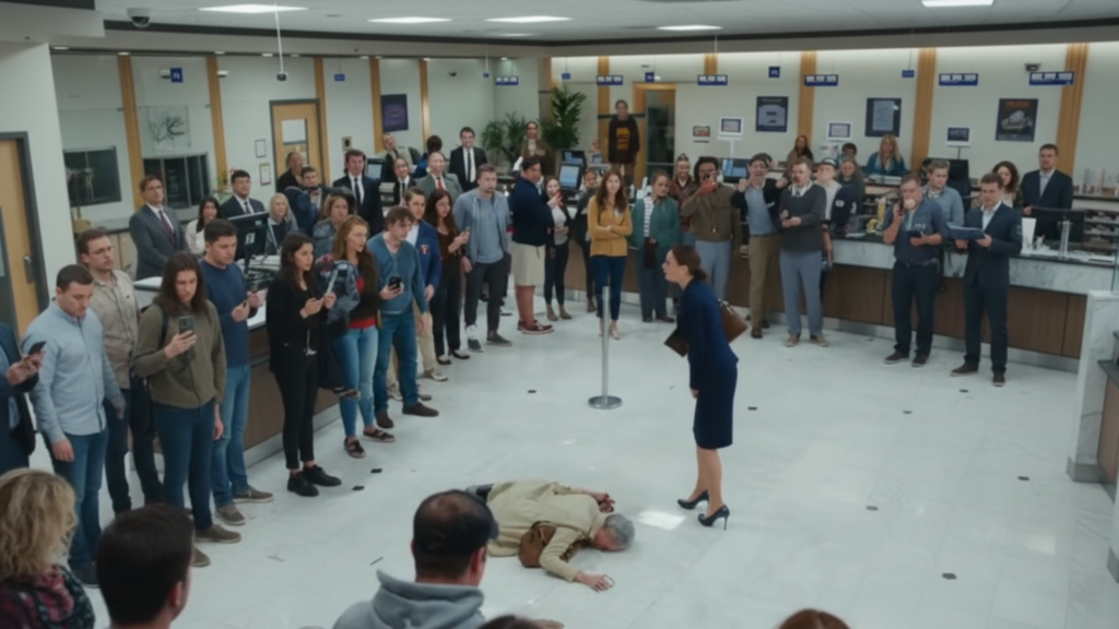 Woman shoves elderly lady to the floor in bank line, calling her a “homeless beggar”… But the phones recording caught more than just assault.