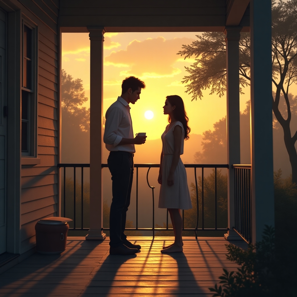 She set her cup down, hands trembling slightly as she gestured for him to join her on the porch. Silence stretched between them, thick with years of unspoken words and emotions buried under layers of resentment and pride.