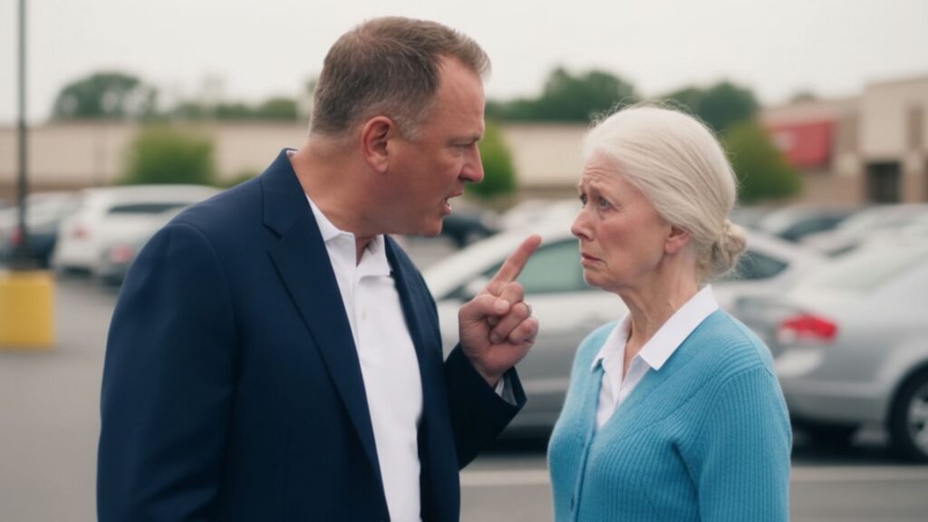 A wealthy couple cornered an elderly woman in a parking lot and screamed she owed them thousands… But the security guard who walked over had footage that turned every accusation back on them…