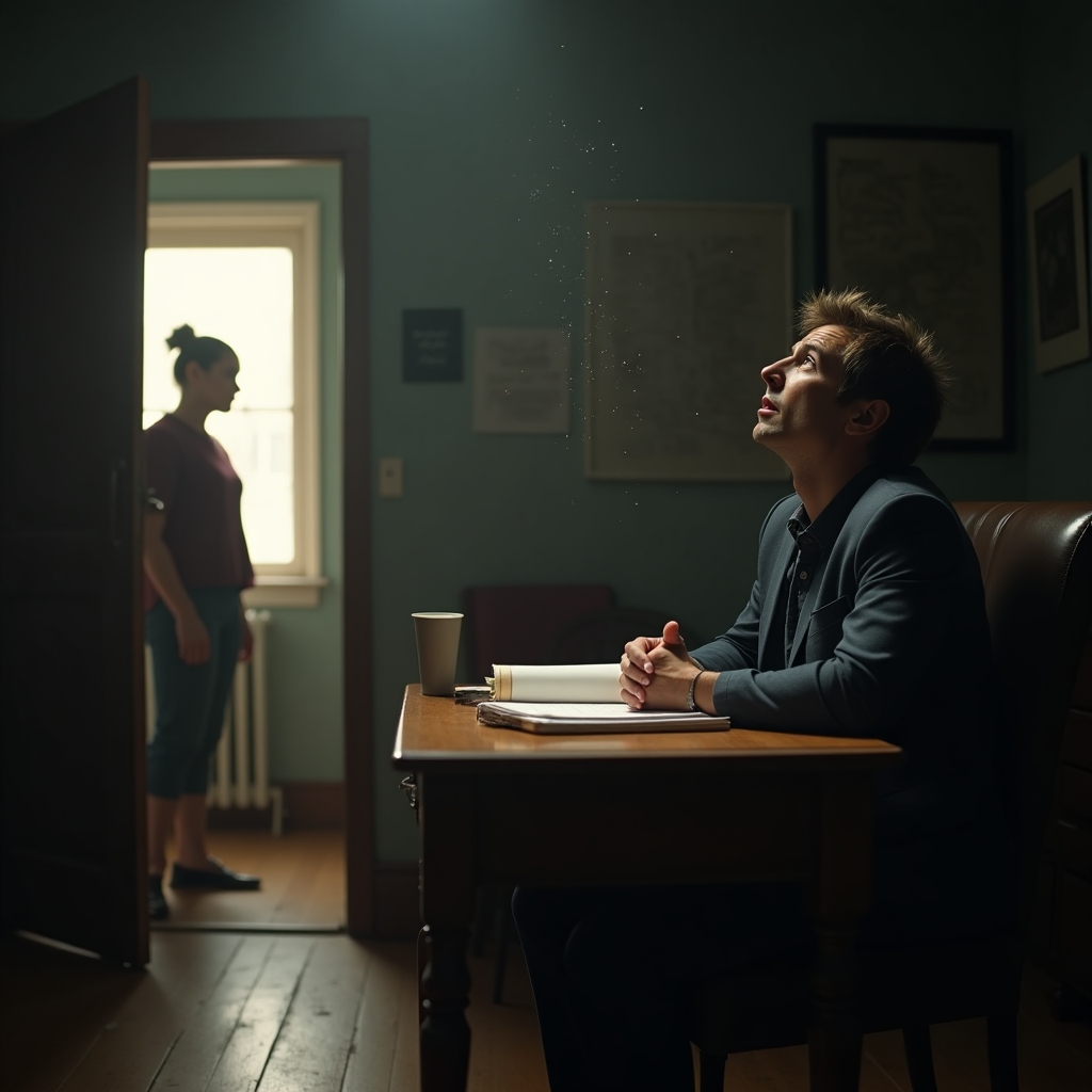Gathering her courage, she turned the handle and stepped inside. David was hunched over his desk, scribbling furiously in a notebook. He looked up, surprise flashing in his eyes before settling into something Anna couldn’t quite decipher.